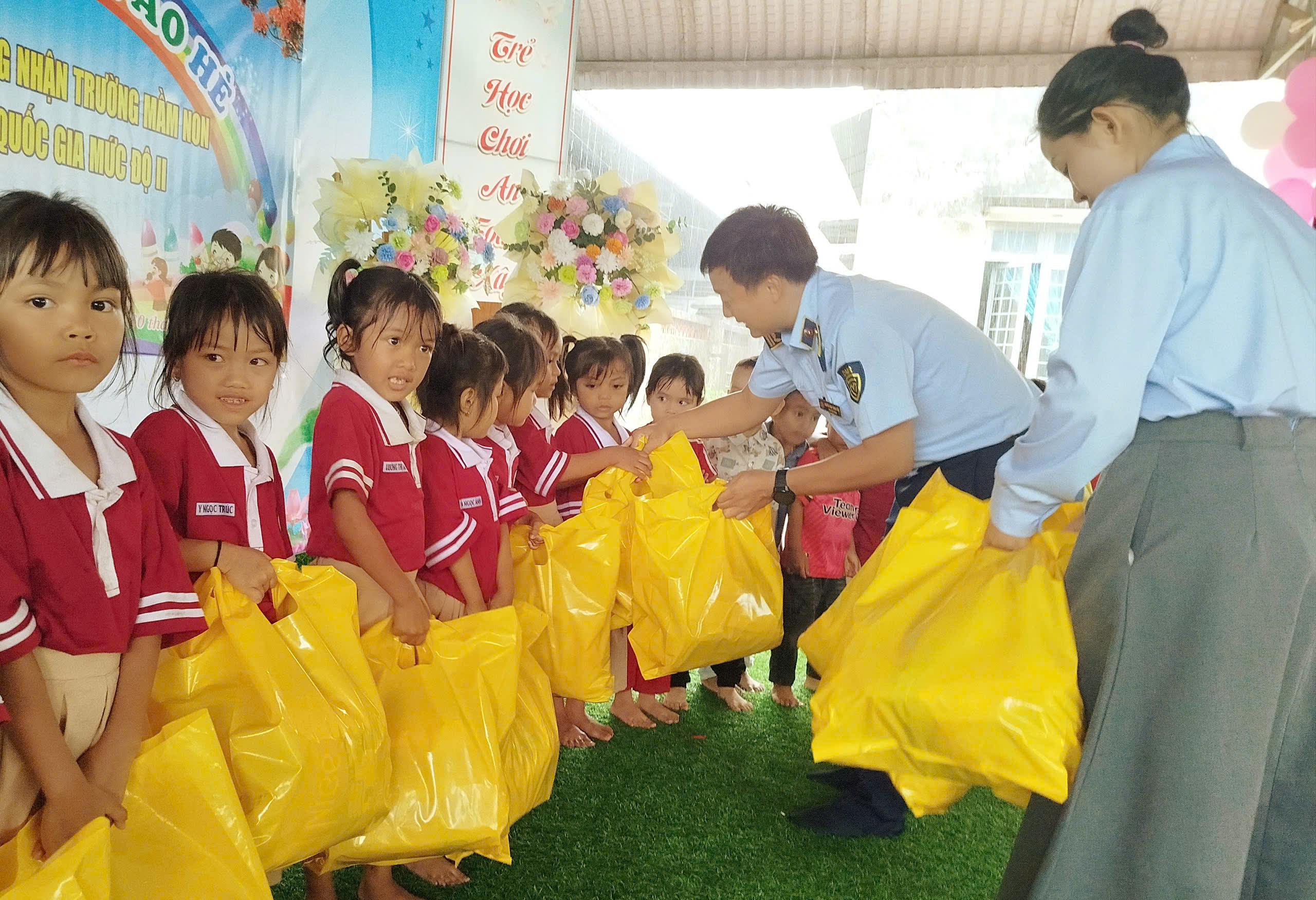 Chiều ngày 29/5/2025, tại Trường Mầm non Đăk Xú huyện Ngọc Hồi tỉnh Kon Tum, Đoàn Công tác của Chi cục Quản lý thị trường cùng với tập thể Đội Quản lý thị trường số 3, phối hợp với Ban Giám hiệu Nhà trường đã tổ chức chương trình tặng quà cho các em học sinh có hoàn cảnh khó khăn tại xã Đắk Xú.