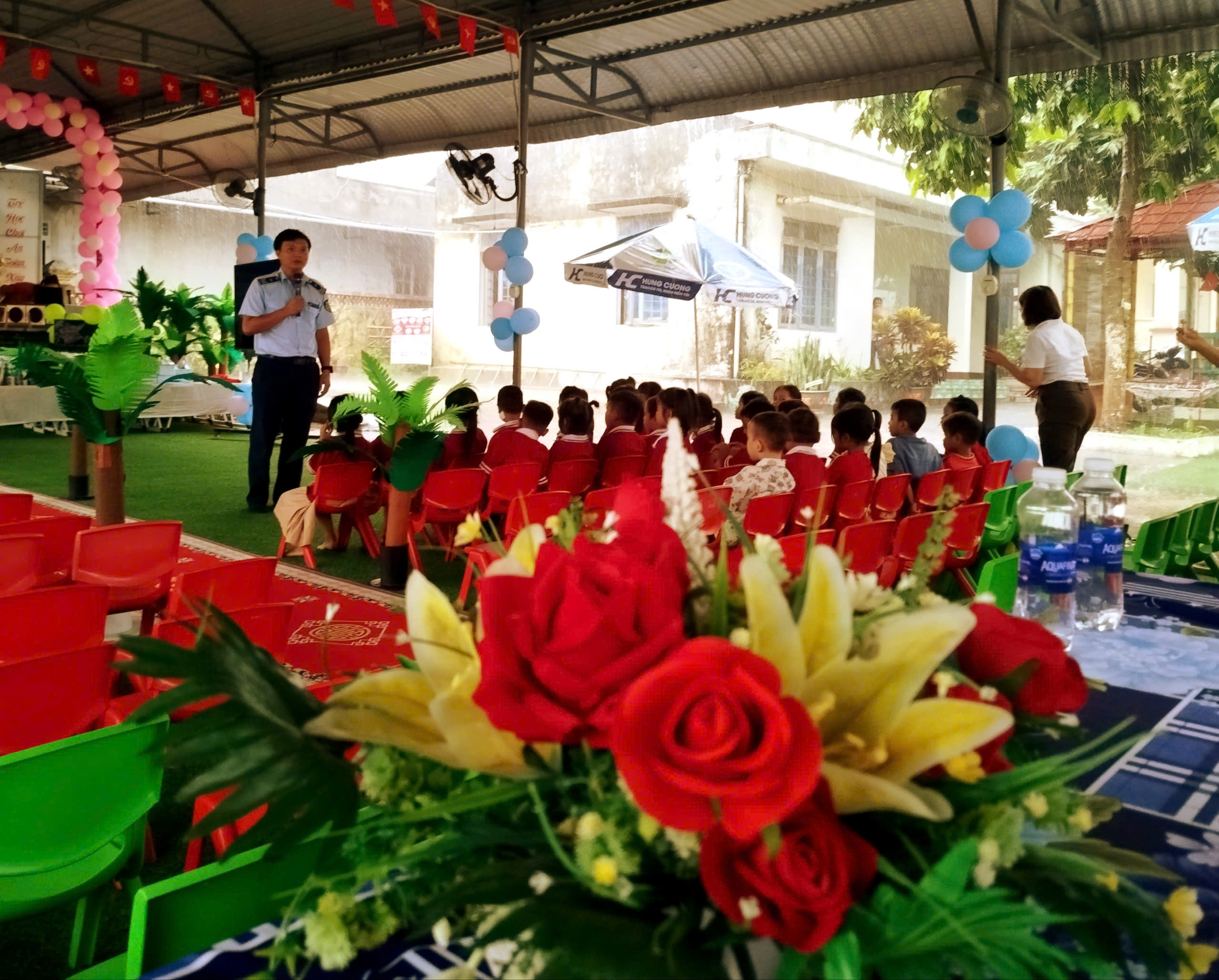 Trường mầm non Đăk Xú hiện quản lý tiếp nhận và tổ chức các hoạt động nuôi dưỡng, chăm sóc, giáo dục các trẻ từ 0-5 tuổi trên địa bàn xã Đăk Xú. Trường có tổng số 17 lớp/395 cháu (trong đó có 2 nhóm trẻ/39 cháu), các cháu học tại trường phần nhiều là con em gia đình có kinh tế khó khăn. Nhằm kịp thời động viên, khích lệ trẻ em, học sinh của nhà trường, đồng thời mang lại chút niềm vui nhỏ cho các em trong dịp Tết Thiếu nhi 01/6, giúp các cháu có thêm tinh thần, động lực vượt qua khó khăn trong cuộc sống, vươn lên trong học tập, rèn luyện. Chi cục Quản lý thị trường do ông Nguyễn Công Thành Tiên phó chi cục trưởng là trưởng đoàn cùng với tập thể Đội Quản lý thị trường số 3, đã phối hợp cùng Ban Giám hiệu Nhà trường trao tặng 50 xuất quà cho trẻ em nghèo, trẻ em có hoàn cảnh đặc biệt khó khăn, trẻ em khuyết tật, trẻ em người dân tộc thiểu số từ 3-5 tuổi của trường.